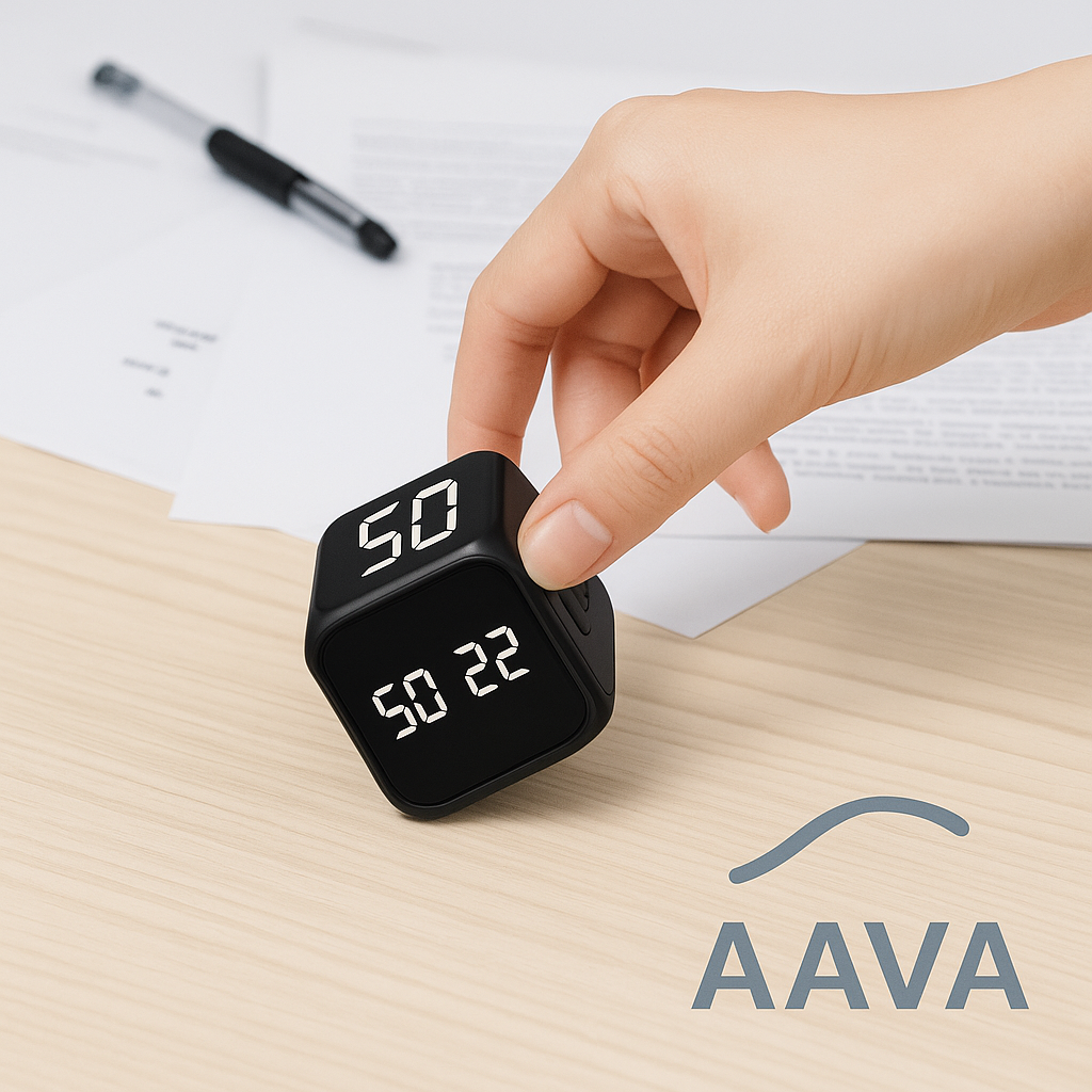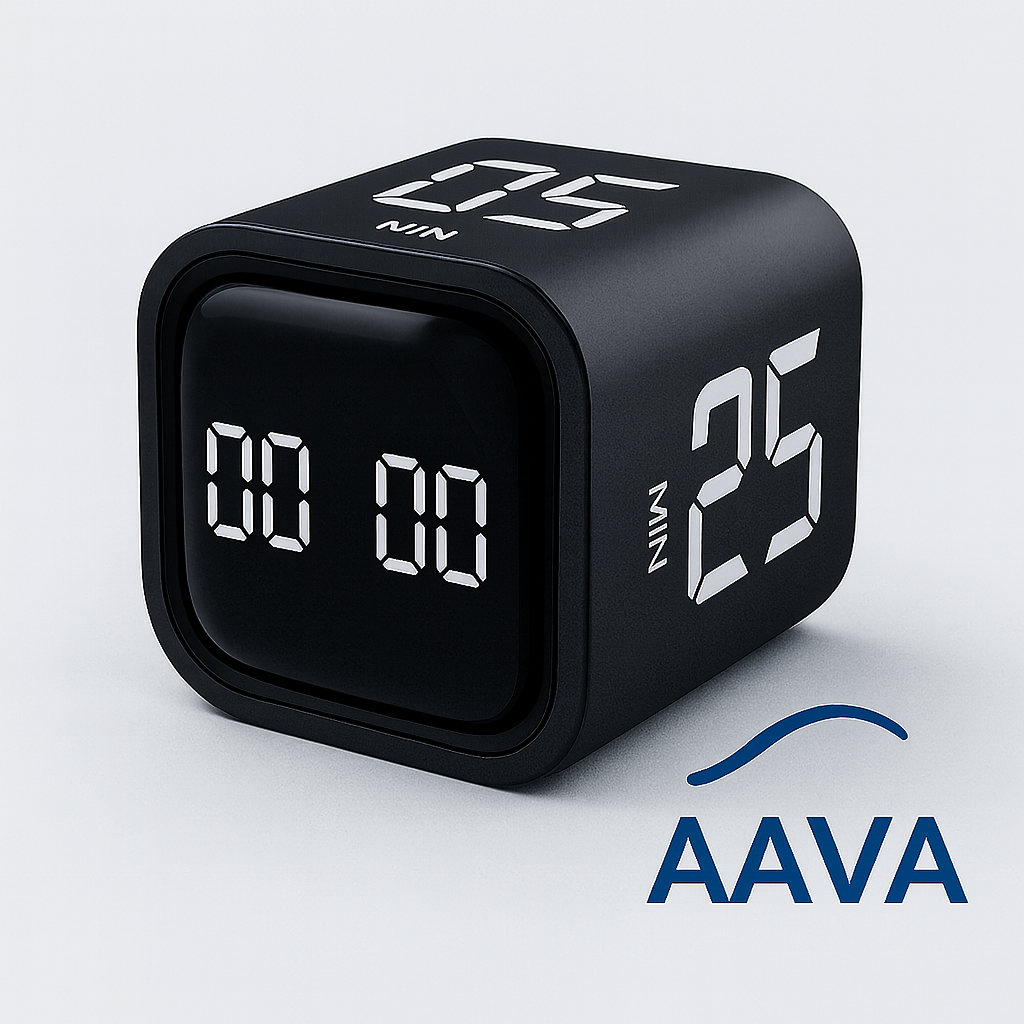 Con una pantalla simple que muestra solo minutos, te mantiene concentrado en la tarea, no en el reloj. Es un compañero duradero y amigable para tu escritorio, que estructura tu tiempo y apoya el trabajo con intención.
