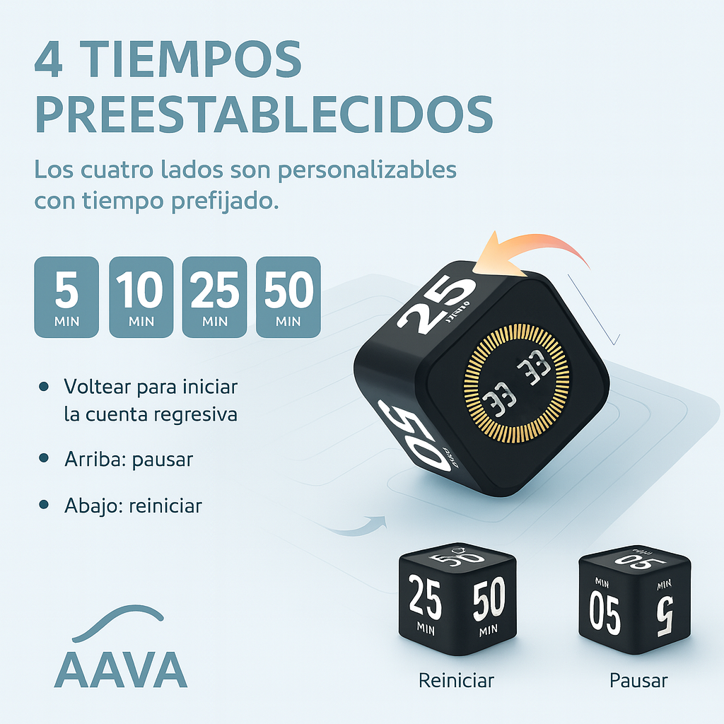 Este cubo temporizador inteligente es efectivo y útil porque transforma la gestión del tiempo en una experiencia física, intuitiva y sin distracciones. Aquí te explicamos por qué funciona tan bien: